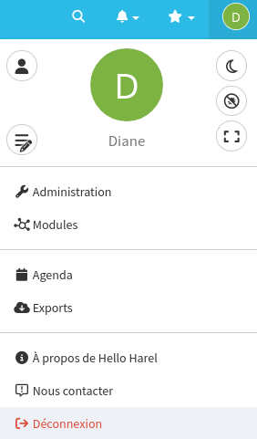Elle est accessible uniquement pour les administrateurs, en cliquant sur votre nom d'utilisateur , puis en sélectionnant dans le menu en haut à droite.