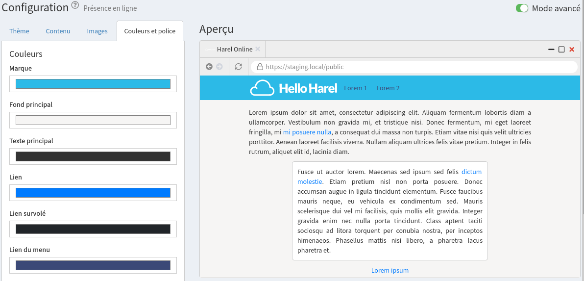 Cet onglet vous permet de configurer l'essentiel de la charte graphique de votre site web.