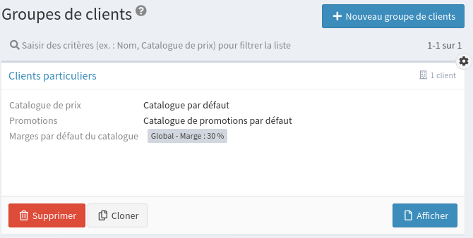 Le bouton Nouveau groupe de clients permet de créer un nouveau groupe de clients.